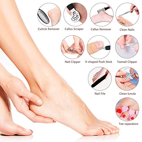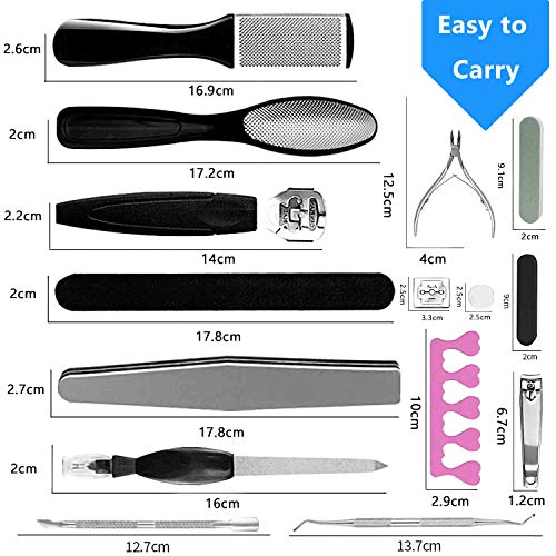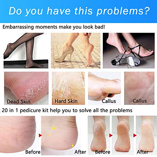 ❤[20 in 1 Foot Files Kit]: The professional pedicure set contains 20 tools, including foot scraper, cuticle pusher, foot clipper, callus remover, cuticle remover, foot file, nail file, nail toenail clipper, etc. Different manicure Pedicure tools set to meet your different needs.
