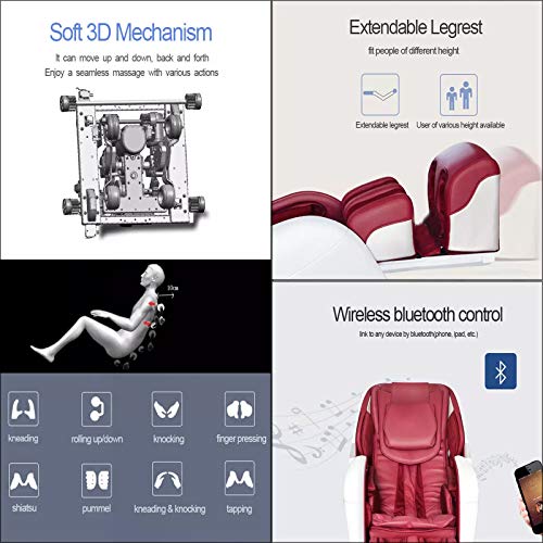 3D Massage:The next generation of 3D massage rollers are designed for outstanding range and flexibility. The 3D technology allows the user to control the length of rollers that extend out from the backrest.Placed in the back region of the chair are 2 heating pads that enhance the massage experience.
