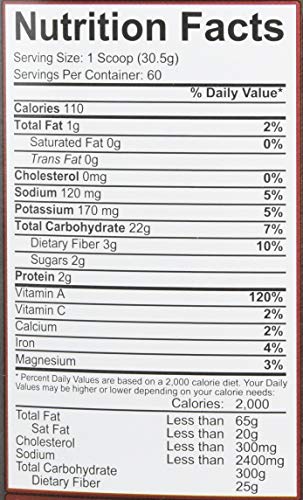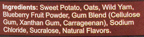 Sweet Potato ,Oats,Pounded Yam,Blueberry Fruit Powder,Natural Flavors, Cellulose Gum, Xanthan Gum, Carrageenan and Sucralose.