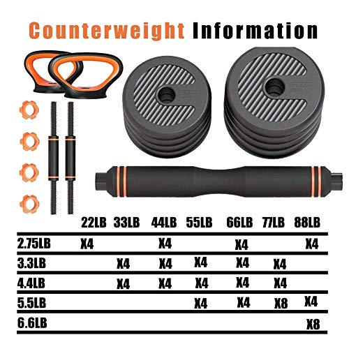 6 in 1 Adjustable Dumbbell Weights Dumbbells Set Anti Rolling Fitness Dumbbells Barbell Kettlebells Set for Gym Work Out Home Training, Suitable for Men and Women 2020(Size:33lb)