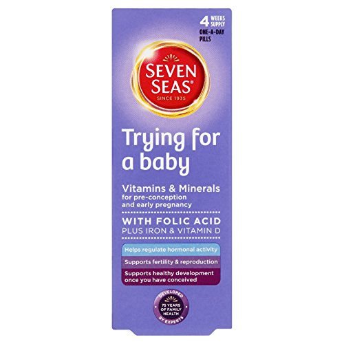 Multipack, Money saving listing consisting of 6 x Seven Seas Trying for a Baby Vitamins & Minerals 28 One-a-Day Pills. One-a-day Vitamins & minerals for pre-conception and early pregnancy With folic acid plus iron & vitamin D Helps regulate hormonal activity Supports fertility & reproduction Supports healthy development once you have conceived Developed by experts – 75 years of family health Seven Seas Trying For A Baby contains 400µg of Folic Acid which is recommended by the UK government. Folic acid is essential for your baby’s development as it is needed to promote the healthy formation of the baby’s neural tube. It also contains essential vitamins and minerals expertly blended for pre-conception and early pregnancy which work in harmony with your body. Helps regulate hormonal activity Supports your normal fertility and normal reproduction whilst trying to conceive Helps support the healthy development of your baby once you have conceived – supports healthy neural tube development Food supplement We have been supporting family health since 1935. Specially crafting products with you in mind, we help make it easy for your family to enjoy good health everyday. Dosage Take one pill a day. If you forget to take a pill, don’t worry, simply miss a day. Do not exceed the recommended dosage.