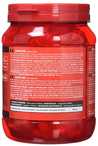 300 Chewable Creatine Tabs Pure Creatine is a natural product, one of the components of the human body. Its main role is to supply energy to muscles. After reaching muscle cells, it is transformed into phosphocreatine, which, in turn, helps the regeneration of the most powerful energy source – ATP (adenosine triphosphate). Moreover, it stimulates the increase of muscle proteins and helps in body regeneration after intensive physical effort. During physical effort the creatine stored in muscles is used up within several seconds; therefore, it is recommended to supplement its level. ACTIVLAB CREATINE TABS are recommended for physically active people and sportsmen.