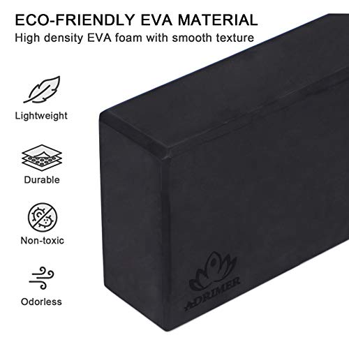 ADRIMER Yoga Block (2 Pack) and Yoga Strap Set, High Density EVA Foam Yoga Blocks to Support and Deepen Poses – Light Weight and Non-Slip Surface for Yoga, Pilates, Meditation