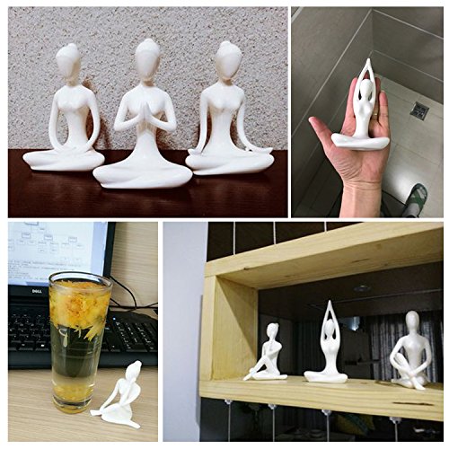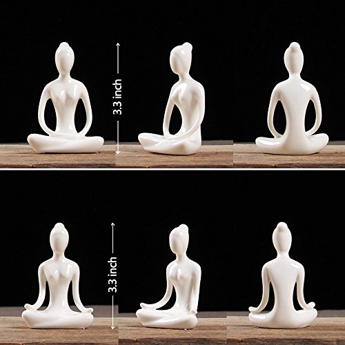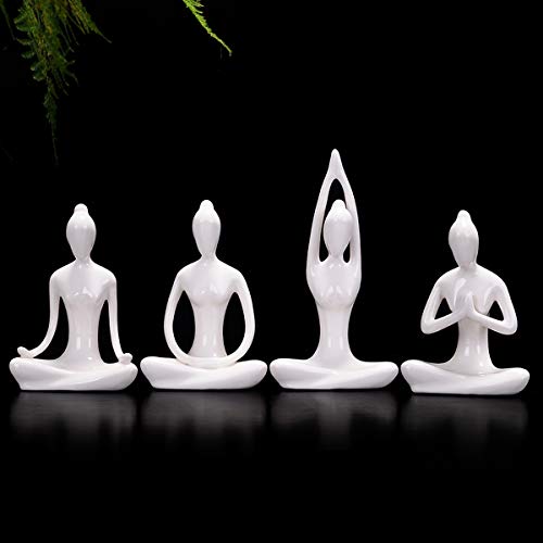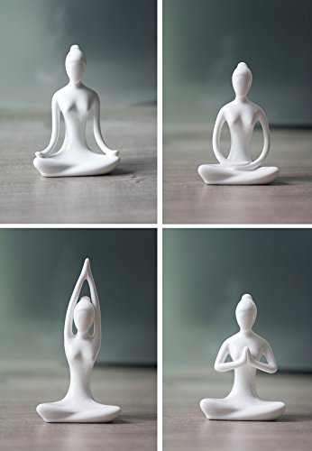 Aifeer Meditation Yoga Pose Statue Figurine Ceramic Yoga Figure Decor White Set of 4