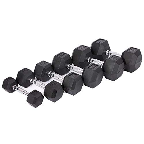 【Rubber Protection】Rubber coated ends for durability and protection. Ergonomically contoured chromed and knurled dumbbell grip. Hexagonal design prevents dumbbell from rolling.