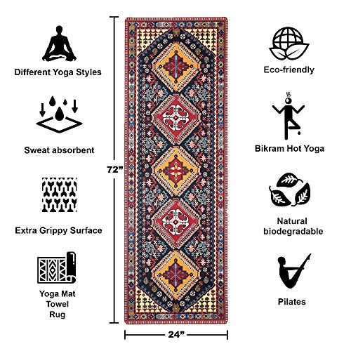 Ananda Premium Yoga Mat +Towel Combo | Luxury Carpet Print | Eco Friendly | Non Slip, Sweat Absorbing | Studio Quality | Ideal for Bikram, Hot Yoga, Ashtanga, Vinyasa, Power | Includes Carrying Strap!