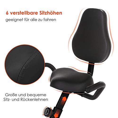 【Large & Comfortable Backrest and 6-height Adjustable Seat 】This exercise bike provide large and comfortable seat & backrest, allows your long time rides. By adjusting the height of the seat, you can choose the right one for yourself. The huge backrest (size : 12.6″ W x 13.4″ L) is ready to withstand your workout and you can fully enjoy your cycling. Increase the strength of the frame which can support a maximum of 300lbs.