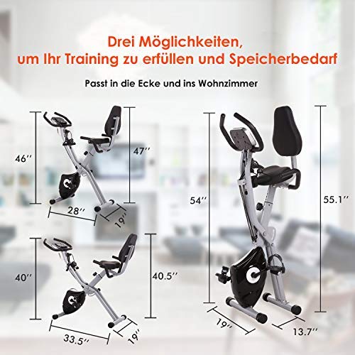 【New APP Folding Exercise Bike Release】This folding exercise bike has 3 modes – fully folded, upright and recumbent , it easily transforms from and upright to a recumbent bike with a pull of a lever. The free APP simulated game scene allows you to experience more fun, unconsciously you have completed today’s fitness goals. You can also play with your friends, speed up and surpass and to be number 1, keep you motivated.