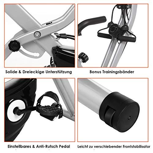 ANCHEER Exercise Bike Fitness Bike, Foldable F-Bike, Indoor Cycling Bike at Home, Fitness Bike with 11 Levels Adjustable Magnet Resistance and Arm Training Bands