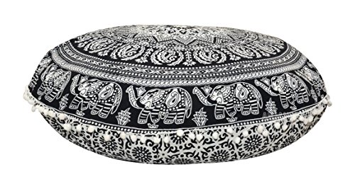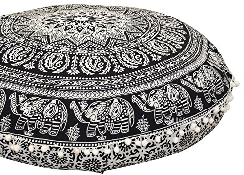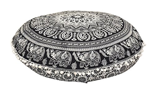 ANJANIYA – 32″ Mandala Bohemian Yoga Meditation Floor Pillow Comfortable Home Car Bed Sofa Cushion Cover Couch Seating Large Zipped Throw Hippie Decorative Ottoman Boho Indian (Black & White Mandala)