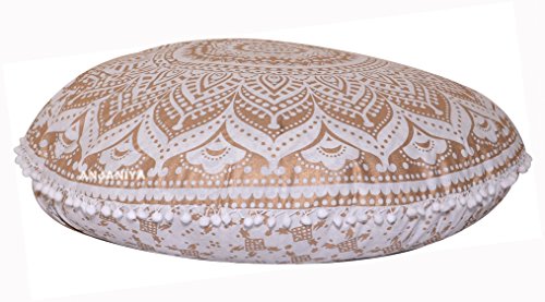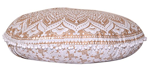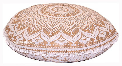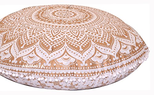 ANJANIYA – 32″ Mandala Bohemian Yoga Meditation Floor Pillow Comfortable Home Car Bed Sofa Cushion Cover Couch Seating Large Zipped Throw Hippie Decorative Ottoman Boho Indian (Golden Ombre)