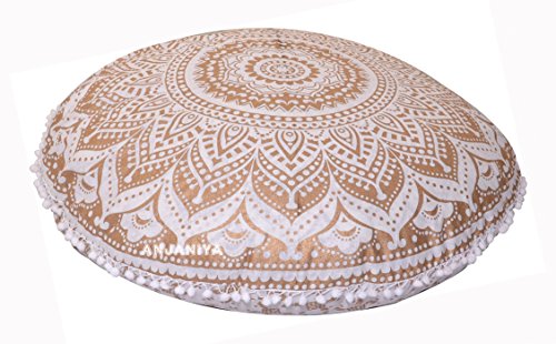 This beautiful screen printed floor pillow is the perfect way to add extra seating that’s fun and funky. Handmade by artisans in Sanganer, this bohemian style floor pillow is made from the mandala and medallion inspired tapestries that we also carry. You will receive this product unfilled, for easier shipping. You can easily fill it with fabric scraps or any filler material of your choice. Toss a few pieces around to add more seating to any space, from the formal living quarters to your entertainment room. Size 32 in. (80 cm) diameter Material 100% Cotton Weight 0.200 Kg ( 8.81 Ounce ) Place of Origin Sanganer – India Care Hand wash separately recommended; don’t soak, or machine wash on cool; gentle cycle; tumble dry Note Cover only; insert not included How to Fill Easily fill from bottom opening with polyfiber or polystyrene (used in bean bags), cotton, scraps of fabric; or pillow inserts can be bought online.