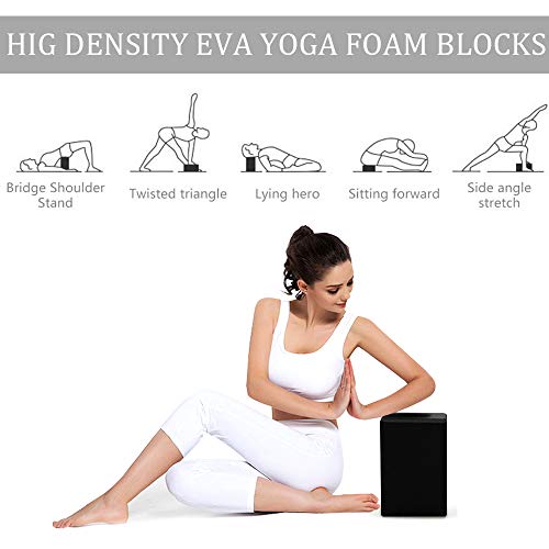 ANJUU Yoga Block 2 Pack High Density EVA Foam Blocks, Non-Slip Surface Cork Yoga Brick 9″x6″x3″Eco-Friendly EVA Foam Exercise Blocks Set for Improve Stretching Yoga/Pilates/Meditation- Black