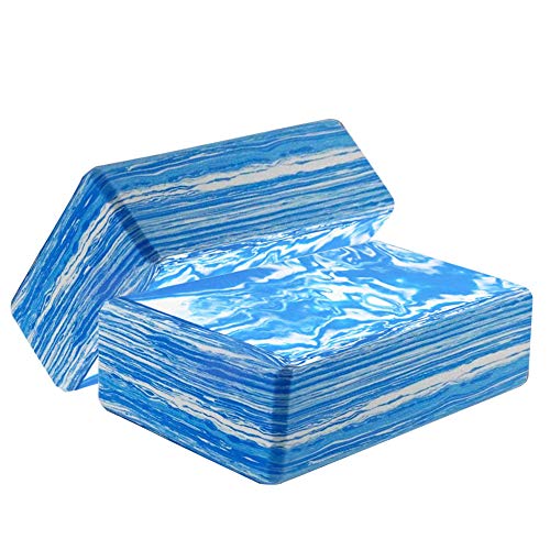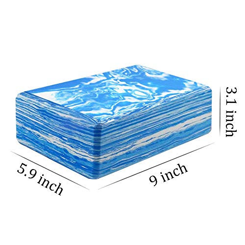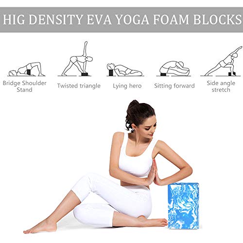 ANJUU Yoga Block 2 Pack High Density EVA Foam Blocks, Non-Slip Surface Cork Yoga Brick 9″x6″x3″Eco-Friendly EVA Foam Exercise Blocks Set for Improve Stretching Yoga/Pilates/Meditation- Blue+White