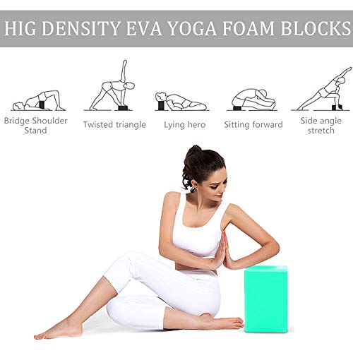 ANJUU Yoga Block 2 Pack High Density EVA Foam Blocks, Non-Slip Surface Cork Yoga Brick 9″x6″x3″Eco-Friendly EVA Foam Exercise Blocks Set for Improve Stretching Yoga/Pilates/Meditation- Mint Green