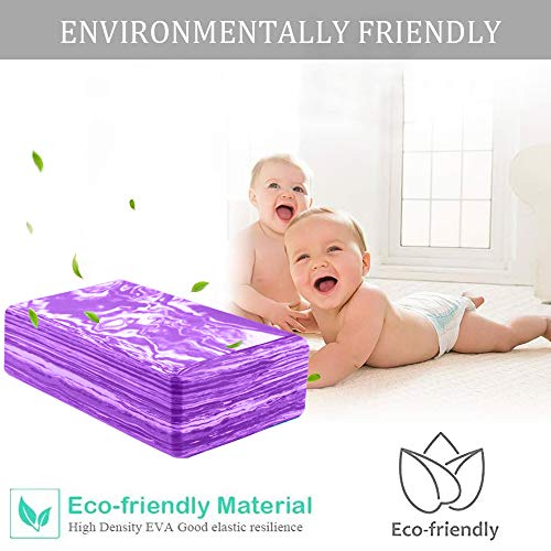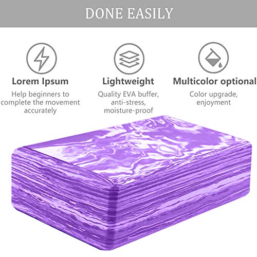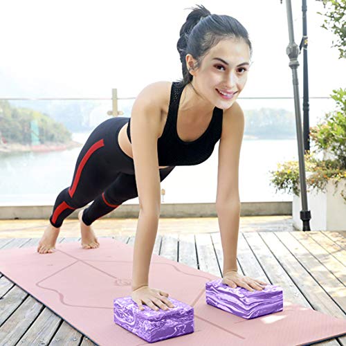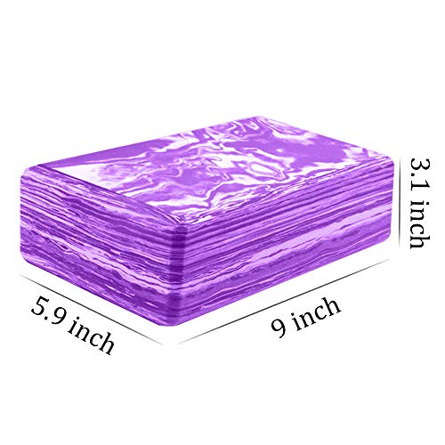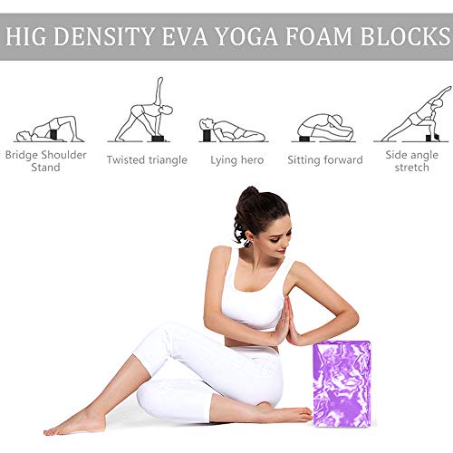ANJUU Yoga Block 2 Pack High Density EVA Foam Blocks, Non-Slip Surface Cork Yoga Brick 9″x6″x3″Eco-Friendly EVA Foam Exercise Blocks Set for Improve Stretching Yoga/Pilates/Meditation- Purple+White