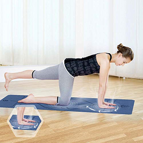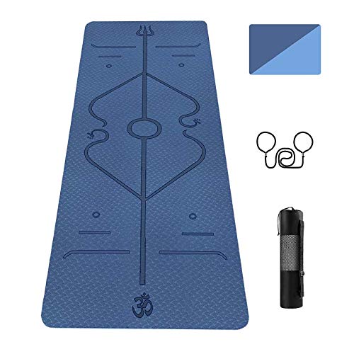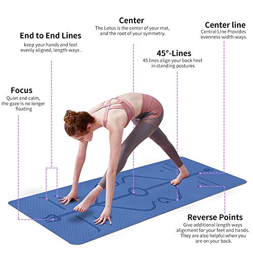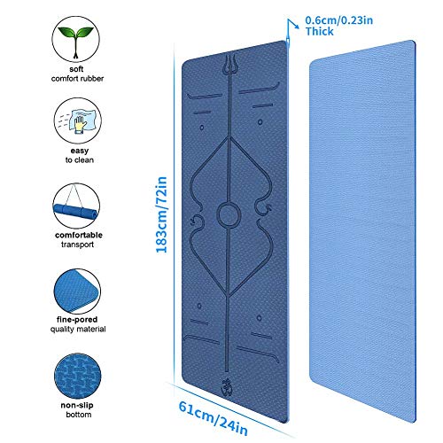 Aoweika Yoga Mat with Body Alignment System, Non Slip Thick Pilates Mat, TPE Fitness Mat, Home Workout Mat with Strap and Mesh Bag, Perfect for Yoga, Pilates and Gymnastics(183 x 61 x 0.6cm)