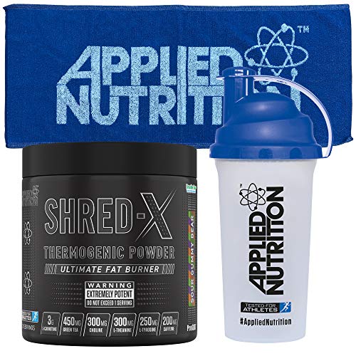 Applied Nutrition Bundle Shred X Thermo Powder + 700ml Shaker + Gym Towel | Weight Loss, Fat Burner with Green Tea, L Carnitine, Thermogenic Energy Detonator Supplement 300g (Sour Gummy Bear)
