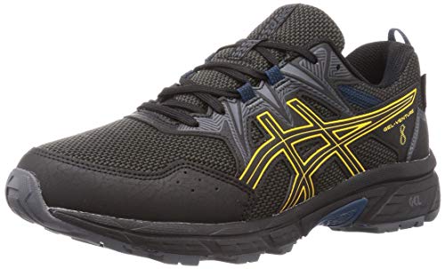 ASICS Gel-Venture 8 Waterproof Trail Running Shoes The GEL-VENTURE 8 WATERPROOF running shoe is designed for the great outdoors. This versatile shoe is excellent for trail runs, light hiking or exploring a new city. Complete with a waterproof application that features a seam-sealed internal bootie construction, the shoe also integrates a gusseted tongue to help keep feet warm and dry in wet weather. Breathable Mesh Upper Mesh uppers encase each foot in durable, breathable comfort. The porous mesh is highly breathable allowing cool air to circulate, removing uncomfortable heat build-up and creating a cool, healthy environment that feet can thrive in. The increases in ventilation allows you to go further for longer in complete comfort whilst reduced overlays added durability and remain lightweight. The overlay reinforcements swathe the midfoot and forefoot to improve stability; they unite with the lacing system to promote complete lockdown, anchoring you to the midsole and reducing in-shoe slippage so that you can enjoy smooth, distraction-free strides. To ensure protection from adverse weather conditions the upper features a waterproof technology which keeps your feet protected in rain and snowstorms. The waterproof membrane prevents water ingress to keep to comfortable and dry in harsh conditions. These shoes allow you to run through puddles, streams, and surprise storms with complete confidence. Completing the upper is a more accommodating forefoot which enhances overall comfort on long distances. EVA Midsole A platform of EVA resides underfoot for lightweight, responsive cushioning. Generous, soft and durable, it spares your joints as they strike down onto hard, unforgiving surfaces. Exceptionally lightweight, the EVA ensures long-lasting cushioning to keep you comfortable on long distance days. EVA is extremely firm, which will absorb shocks instantly and effectively, preventing them from causing any damage to the sole of the foot. Energy produced fr