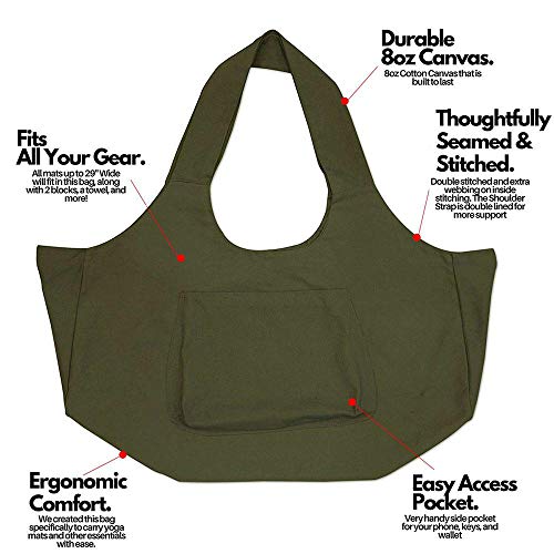 AUOKER Yoga Mat Carrier, 8oz Large Capacity Yoga Mat Tote Bag with Side Pocket – Light Weight, Durable, Dirt Resistant – Fit Most Size Mats