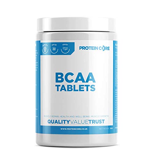 BCAA Tablets – Branch Chain Amino Acids Tabs – Leucine – Isoleucine – Valine – Sports Nutrition Supplement – Muscle Build + Strength – Pills + Repair – Improve Strength + Fitness – Protein Core (90)