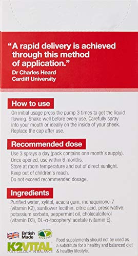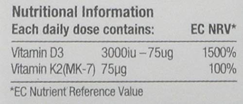 3 sprays delivers 3000IU (75ug) of vitamin D3 plus 75ug of vitamin K2
