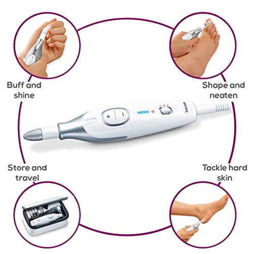 Beurer MP42UK Pedicure and Manicure Set Nail care Professional kit for your hands and feet 7 attachments Adjustable intensity LED light for precision Clockwise/anti-clockwise rotation