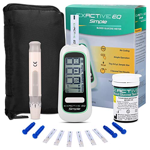 【COMPLETE BLOOD GLUCOSE TESTING KIT】 – Our particular Exactive EQ diabetes testing kit is committed to your daily health monitoring, it includes: blood glucose monitor, codefree test strips x 50, lancets x 50, painfree lancing device, carry bag, user manual, you can find it convenient to keep track of your glucose levels at home in a fast way