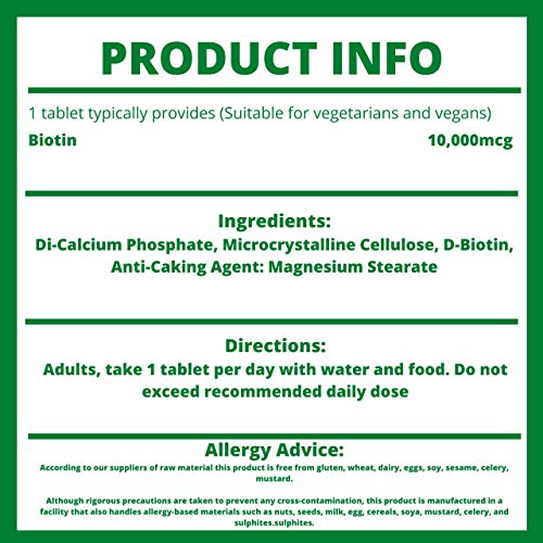 Biotin Vitamin B7 10,000 mcg Hair Growth Vitamins for Men & Women – 120 Tablets UK Made