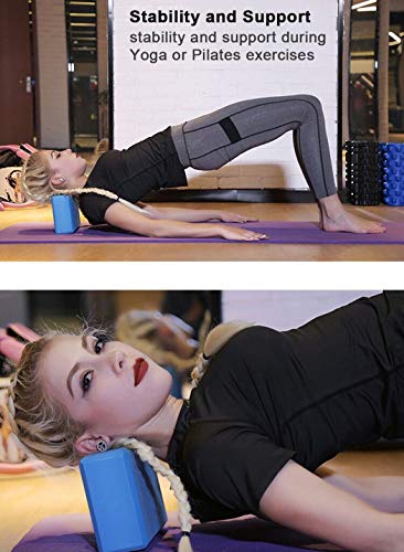 LIGHTWEIGHT AND EASY TO CLEAN: 2 yoga block (9″W x 6″H x 3″ D) plus a yoga strap(12 soft and nonelastic loops,8 foot long and 1.57 inches wide) in one set, Each yoga block weighs only 0.44lb.Care info: Just simply wipe down the block with soap and water. The block can be dried with a towel or simply left to air dry