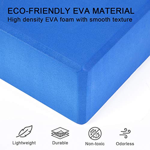BIPASION Yoga Block (2 Pack) and Yoga Strap Set, High Density EVA Foam Block to Support and Improve Poses and Flexibility