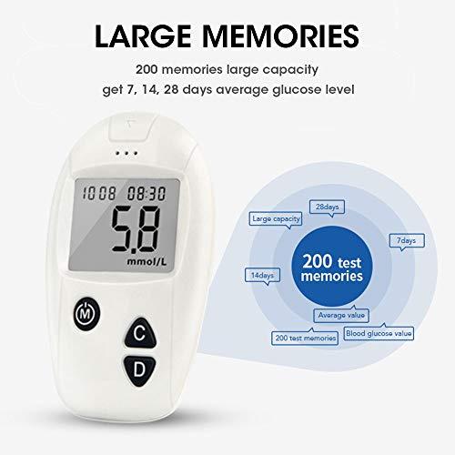 The memory capacity reaches 200. Recording your 7 days, 14 days and 28 days average results. With easy access to historical data, you can monitor your blood sugar levels and keep track of any fluctuations.