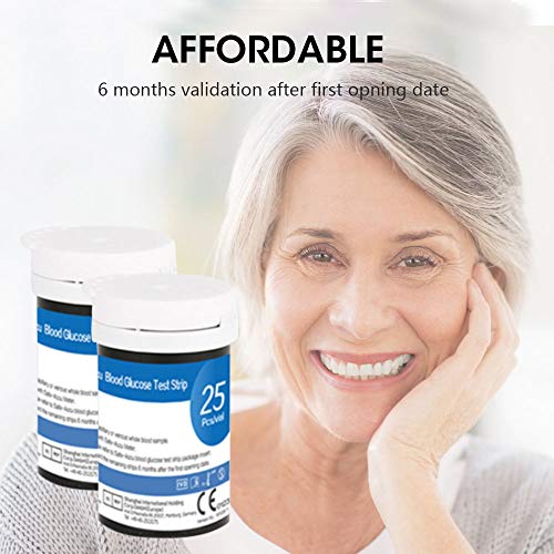 Kit including:blood glucose monitor + test strips x 50 + lancets x 50 + painfree lancing device + 1 CR2032 battery + carry case + user manual.