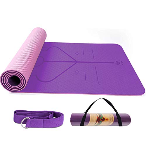 BUDDYGO Yoga Mat, Alignment Yoga Mat TPE Eco Friendly Non Slip Fitness Exercise Mat – Carry Strap and Yoga Band Included, the Best Travel Yoga Mat Lightweight Foldable, Also is Home gym Pilates Mats