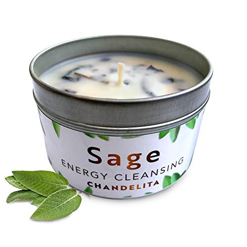 CHANDELITA Aromatherapy Candle Scented with Pure Sage for Home Blessing and Energy, Sage Leaves with Soy Wax for Purification, Relaxation, Meditation and Chakra Healing – Gentle aroma