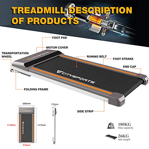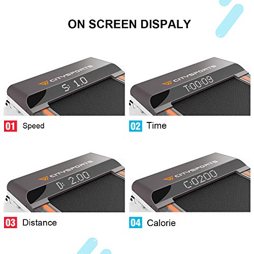 【FAST, ROBUST AND DURABLE】: Designed for sustainable use with a 400 W motor, the maximum weight of the CITYSPORTS WP1 user is 100 kg. Choose your speed between 1 and 6 km / h and start improving your cardiovascular condition with our CITYSPORTS treadmill.