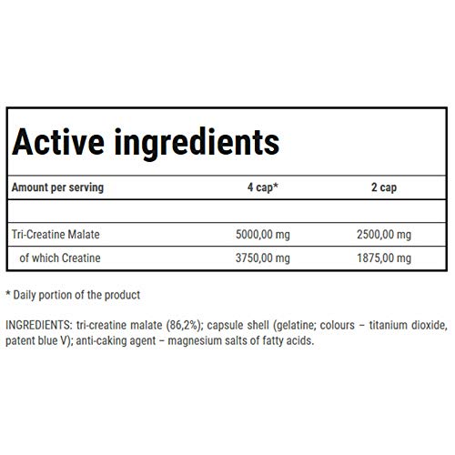 CM3 1250 TRI-CREATINE MALATE is a product containing tri-creatine malate. This is a form of creatine, which is resistant to the acid environment of the digestive tract and which dissolves very well. CM3 1250 contains creatine, which increases physical performance over successive short, high-intensity bursts of physical exercise