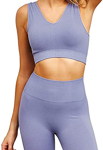 🌸V-neck Simple Style Yoga Clothing: Made of 87% nylon 13% spandex, non-slip weave texture adds a bit of uniqueness and texture. Very nice mid to thickness that holds its shape and not see-through. These seamless leggings and bras set will be a good casual or workout outfit to wear for all seasons.