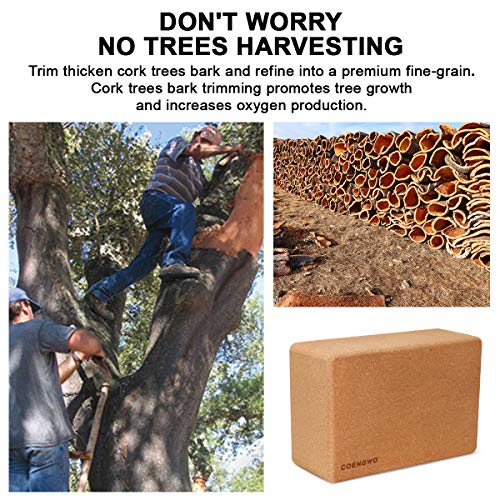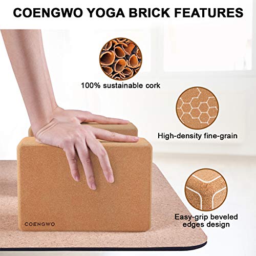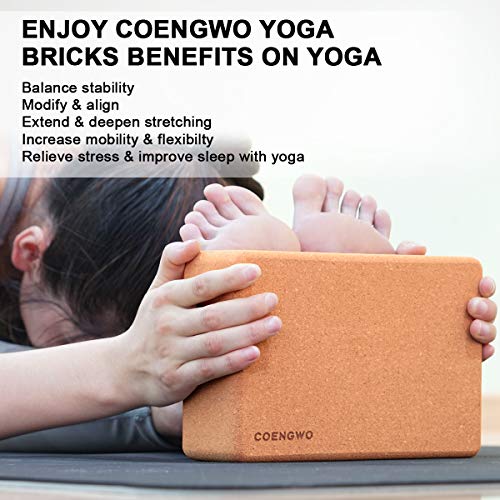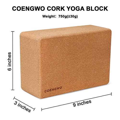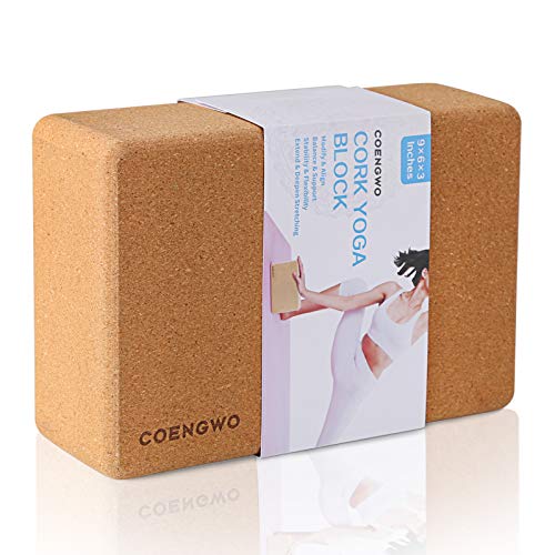 COENGWO Cork Yoga Block – Yoga Block Cork (1 Pack/2 Pack) Non-Slip 9’’x6’’x3’’ Yoga Cork Block Set