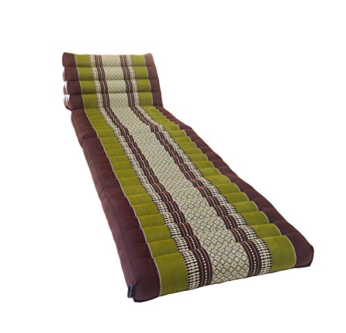 Collumino® Traditional Thai Kapok 3 Fold Meditation Mattress with Oriental Style Triangle Recliner Cushion for Yoga Massage or Relaxation (Green, Brown)