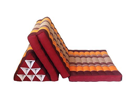 Collumino® Traditional Thai Kapok 3 Fold Meditation Mattress with Oriental Style Triangle Recliner Cushion for Yoga Massage or Relaxation (Orange, Maroon)