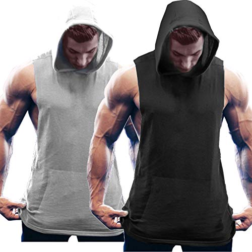 COOFANDY Men’s 2 Pack Workout Tank Tops Gym Vests Fitness Hooded Vest Muscle Bodybuilding Sports T Shirts Sleeveless Hoodies with Pockets