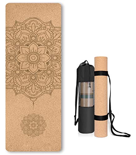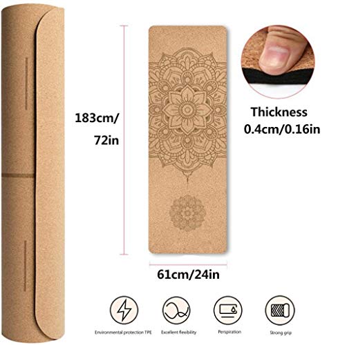 Cork Yoga Mat Non Slip Unique Design Natural Cork Tpe Material Fitness Exercise Mat with Carry Bag and Strap For Home, Pilates,Aerobic,Gym & Workout 72 X 24