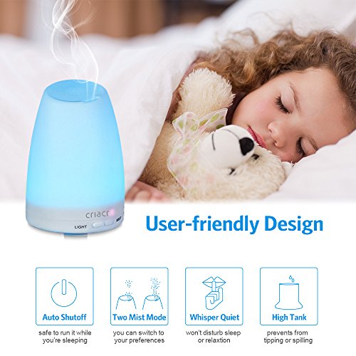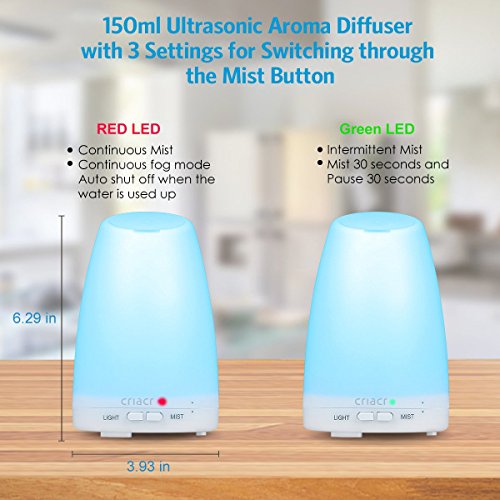 Criacr 150ml Essential Oil Diffusers, Aromatherapy Diffusers with 7 Colorful LED Lights, Adjustable Mist Mode, BPA-Free, Waterless Auto Shut-off Humidifiers, for Home, Yoga, Office, Spa, Baby Room