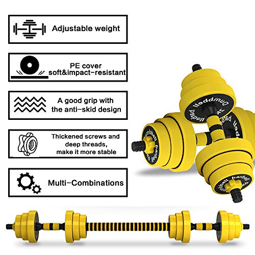 ADJUSTABLE WEIGHTS SET. The DDFE Dumbbell set is a 2- in -1 weights set, can be used as a dumbbell and barbell lifting. Use as barbell lifting just need to use connecting rode to link two sides dumbbell together, or remove the rod to use as dumbbell.