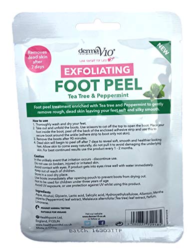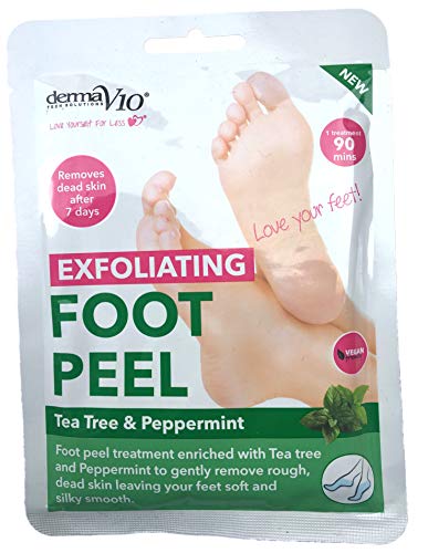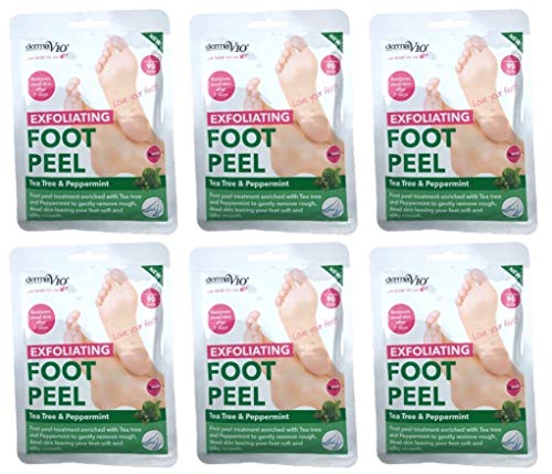 New Exfoliating Foot Peel Treatment Gently Removes Rough Dead Skin After 7 Days Leaving Your Feet Soft & Silky Smooth. Enriched With Tea Tree & Peppermint. 90 Minute Treatment. 6 Pack.