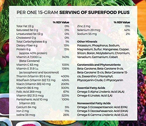 Ingredients: Spirulina, Blue-Green algae, Chlorella, Alfalfa, Barley and Wheat grasses, Purple Dulse seaweed, Acerola cherries, Rose Hips, Orange and Lemon peels, Palm fruit, Beetroot, Spinach leaf and Dr. Schulze’s proprietary non-active Saccharomyces cerevisiae nutritional yeast. All the ingredients have been naturally dried and then tumble blended for less than two minutes to preserve their nutritional vitality and integrity.