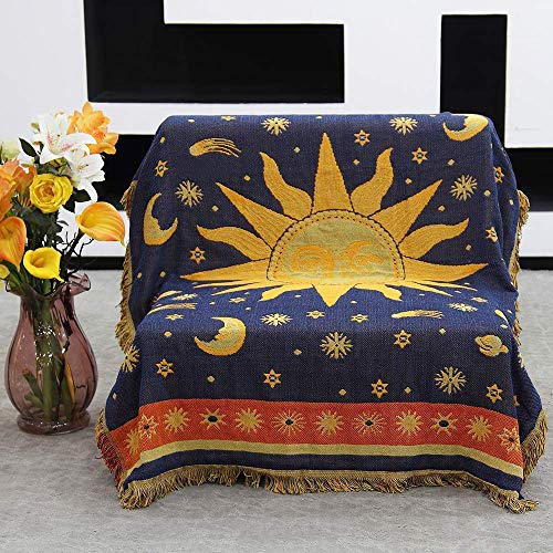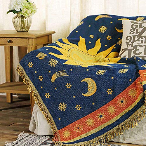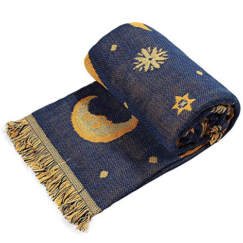 Dulcii Decorative 100% Cotton Woven Throw Blanket Sofa Towel Cotton Warm Slipcover 130 x 180cm (Sun Moon Stars)