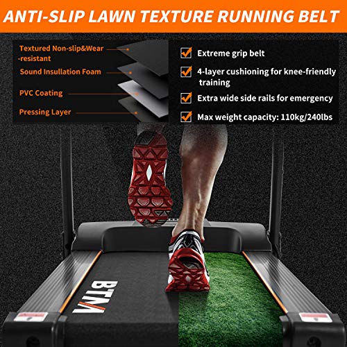 【Safe and quiet training experience】The running belt of this treadmill is made of quality foam and PVC coating, the 4-layer cushioning protect your knees to the utmost extent. The sound insullation foam makes the training quiet and comfortable.
