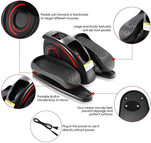 [2 in 1 & Compact]This leading compact ergonomic elliptical can plug in the power to assisted workout or use it directly without power. It gives your full workout while you sit at home and office.
